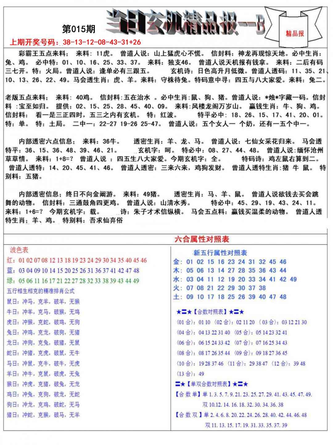 当日玄机精品报B